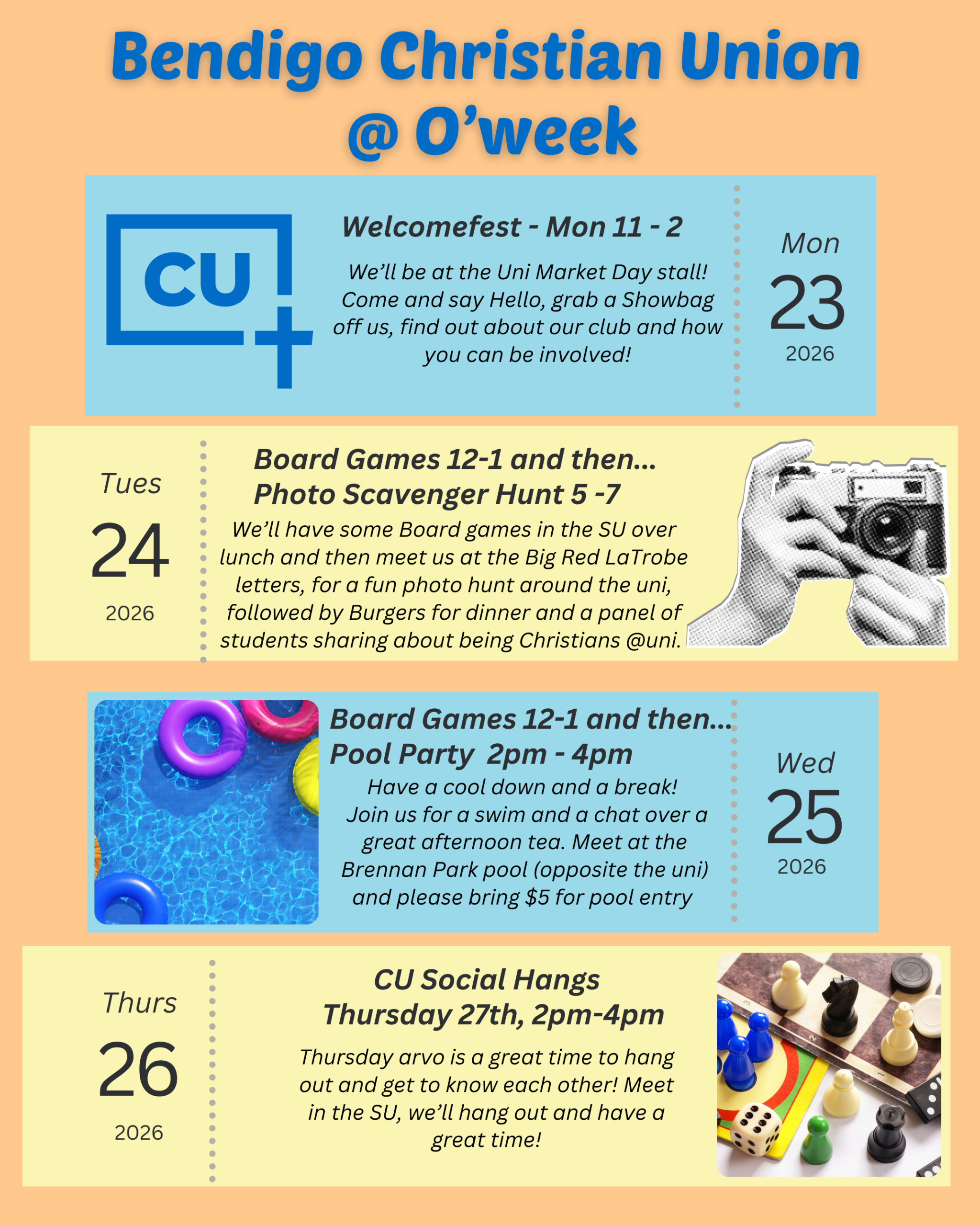 A warm welcome to you if you’re a new student studying with LTU Bendigo in 2026! All of us from the Bendigo Christian Union can’t wait to meet you during O-Week.